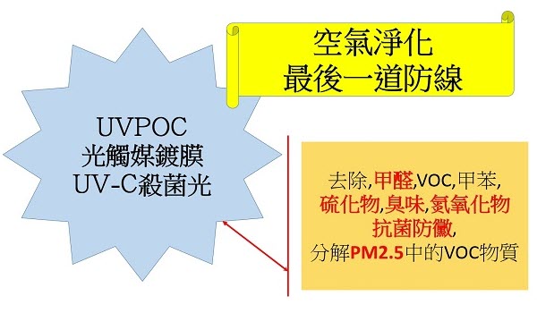 行政院環保署已經在100年11月公布了,室內空氣品質管理辦法,並且已經正式實行中,針對室內空氣品質改善的問題,本公司以最高的性價比( high C/P值)做到維持高品質的室內空氣品質,本公司所採用的是21世紀最新的空氣淨化技術整合奈米光觸媒高級氧化等技術,搭配室內使用之室內空調設備一並搭配整合,達到室內空氣品質於標準值內。